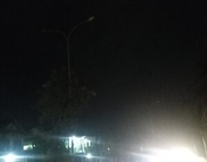 _Namun amat di sayangkan keadaan lampu penerangan jalan tidak berfungsi alias gelap gulita.”Sabtu (25/10/2025).Jam 21.45 WIB.