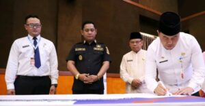 _ Kabupaten Bekasi menggelar Kick Off Aksi Perubahan KAPAK BEKASI (Kolaborasi Aksi Pentahelix Kabupaten Bekasi) sekaligus Penandatanganan Komitmen Bersama Pencegahan dan Penurunan Stunting, bertempat di Aula KH Noer Ali, Gedung Bupati Bekasi, Jumat (14/11/2025).