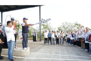 _ Wakil Bupati Bekasi, dr. Asep Surya Atmaja, membuka secara resmi kegiatan Gerak Jalan Santai dalam rangka Peringatan Hari Guru Nasional (HGN) Tingkat Kabupaten Bekasi Tahun 2025 yang dipusatkan di Area Parkir Utara Zona G AEON Mall Deltamas, Minggu (30/11/2025).