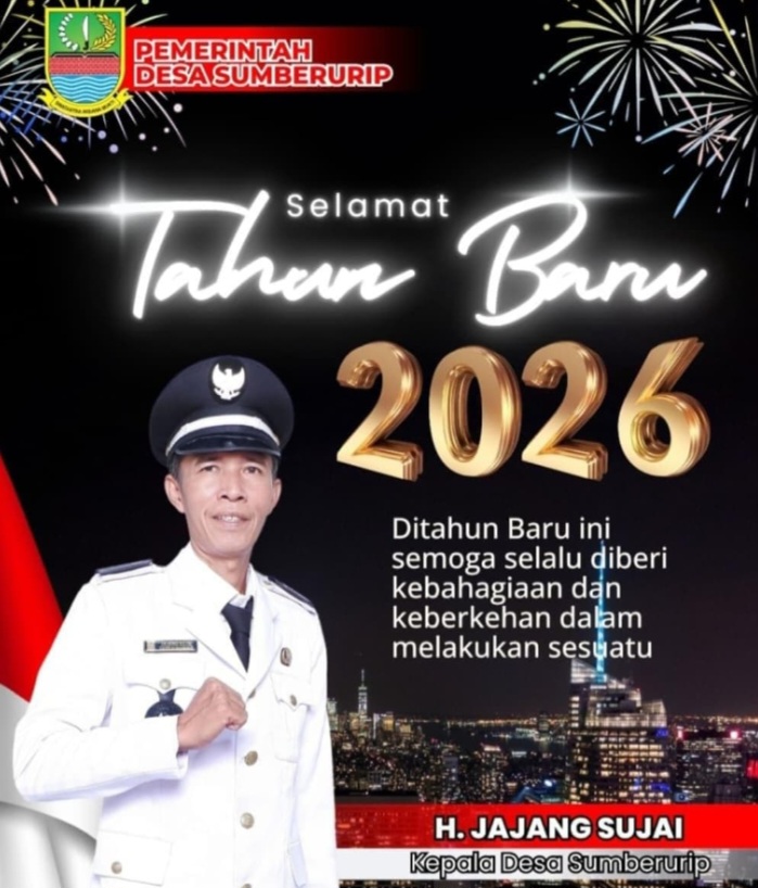 _ Pemerintah Desa Sumber Urip , Kecamatan Pebayuran ,Kabupaten Bekasi,Jawa barat, menyampaikan ucapan Selamat Tahun Baru 2026 kepada Kepala Desa Sumber Urip , L.H.Jajang Sujai ucapan tersebut menjadi bentuk doa dan harapan agar kepemimpinan desa di tahun yang baru semakin membawa kemajuan dan keberkahan bagi masyarakat.Kamis (01/01/2026).
