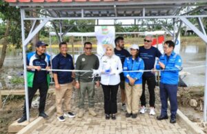 _ Peresmian bantuan dilakukan di aliran Kali CBL, Kecamatan Sukawangi, Rabu (28/01/2025). Selain kapal penjaring sampah, turut disiapkan Rumah Pemulihan Sampah yang berfungsi sebagai pusat pemilahan dan pengolahan sampah hasil tangkapan dari sungai.