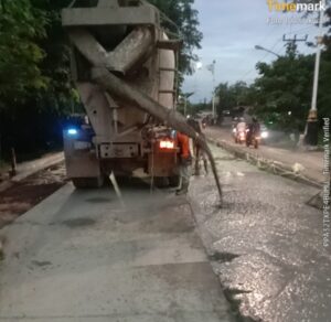 ” Andry ” katakan pekerjaan pengecoran pada titik saat ini yang sedang berlangsung di kerjakan seluas 1000 Meter / 1 Km , dan merupakan sudah tugas serta tanggung jawab kami dari pihak penyedia jasa agar para pengguna jalan melintasi jalan ini , para pengendara roda empat (mobil), atau dua (motor) , merasa nyaman dalam berkendara pak.”Tuturnya.