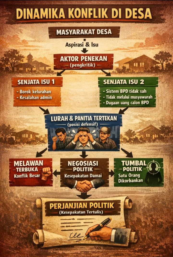 ” Di tengah isu tersebut, seorang pria berinisial U disebut turut memperjuangkan agar anaknya dapat maju sebagai kandidat calon anggota BPD. Namun, langkah yang ditempuh dinilai kontroversial karena diduga disertai tekanan kepada pihak penyelenggara.